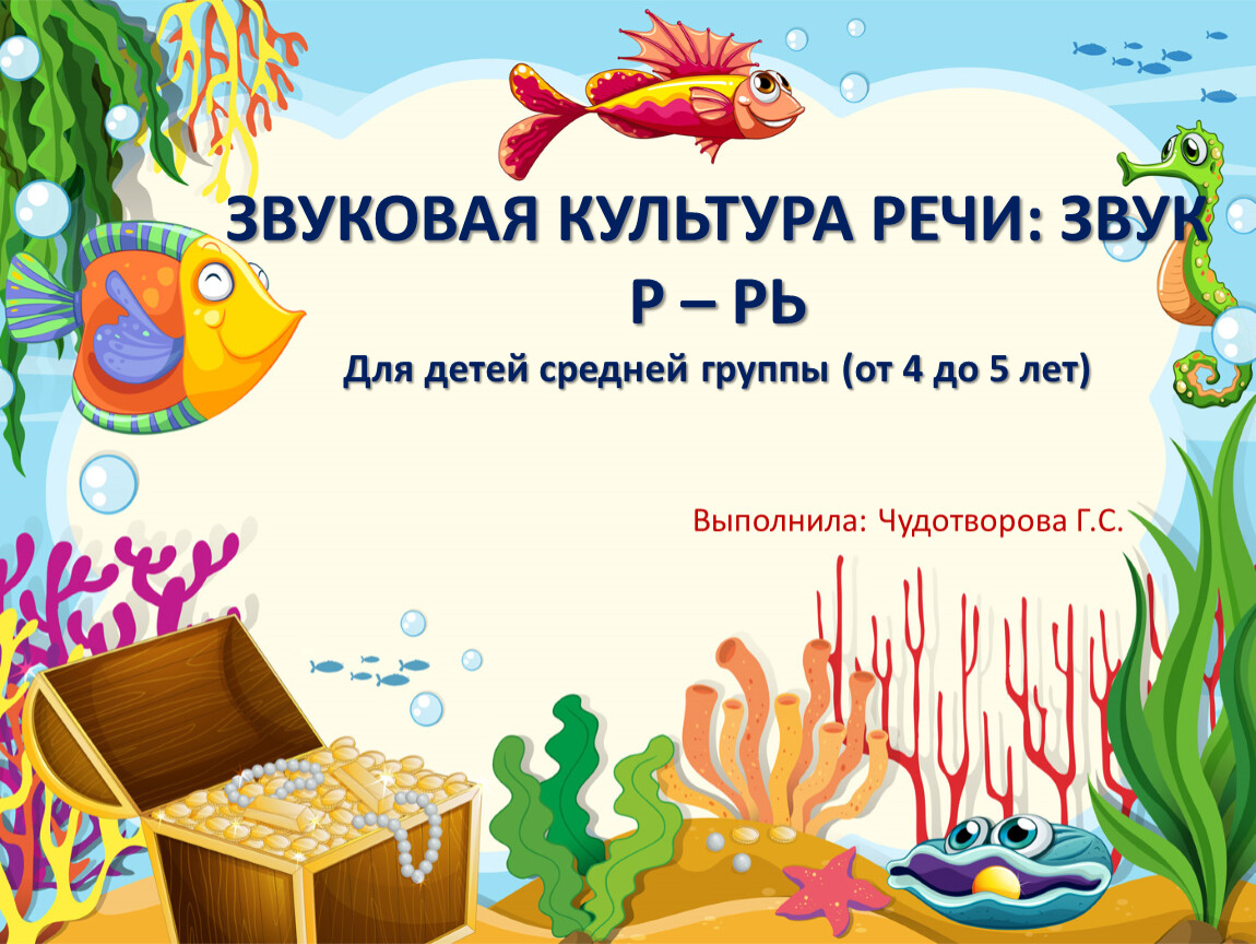 ЗВУКОВАЯ КУЛЬТУРА РЕЧИ: ЗВУК Р – РЬДля детей средней группы (от 4 до 5 лет)