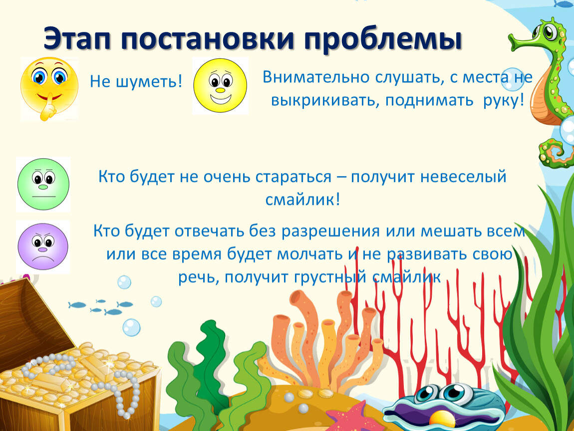 Кто будет отвечать без разрешения или мешать всем или все время будет молчать и не развивать свою речь, получит грустный смайлик