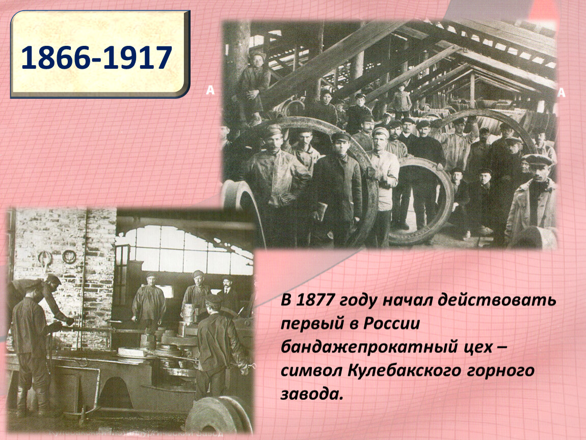 В 1877 году начал действовать первый в России бандажепрокатный цех – символ Кулебакского горного завода.