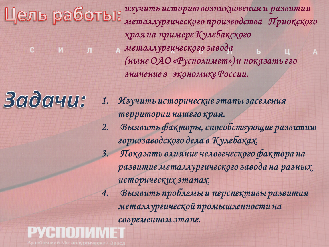 изучить историю возникновения и развития металлургического производства Приокского края на примере Кулебакского металлургического завода