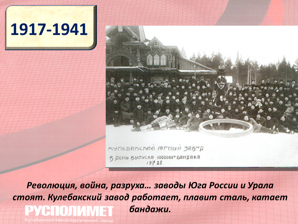 Революция, война, разруха… заводы Юга России и Урала стоят. Кулебакский завод работает, плавит сталь, катает бандажи.