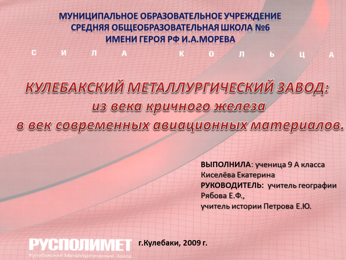 КУЛЕБАКСКИЙ МЕТАЛЛУРГИЧЕСКИЙ ЗАВОД:
