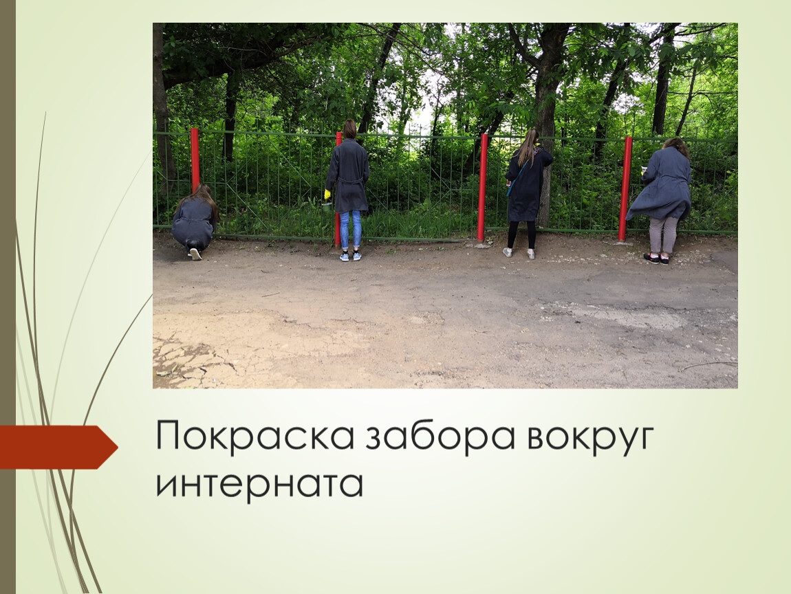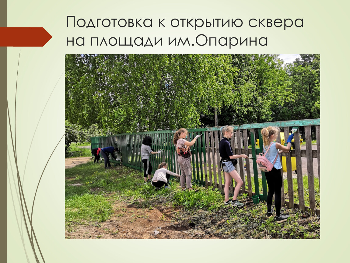 Покраска забора д/с №222, подготовка территории сквера на площади им.Опарина к открытию.
