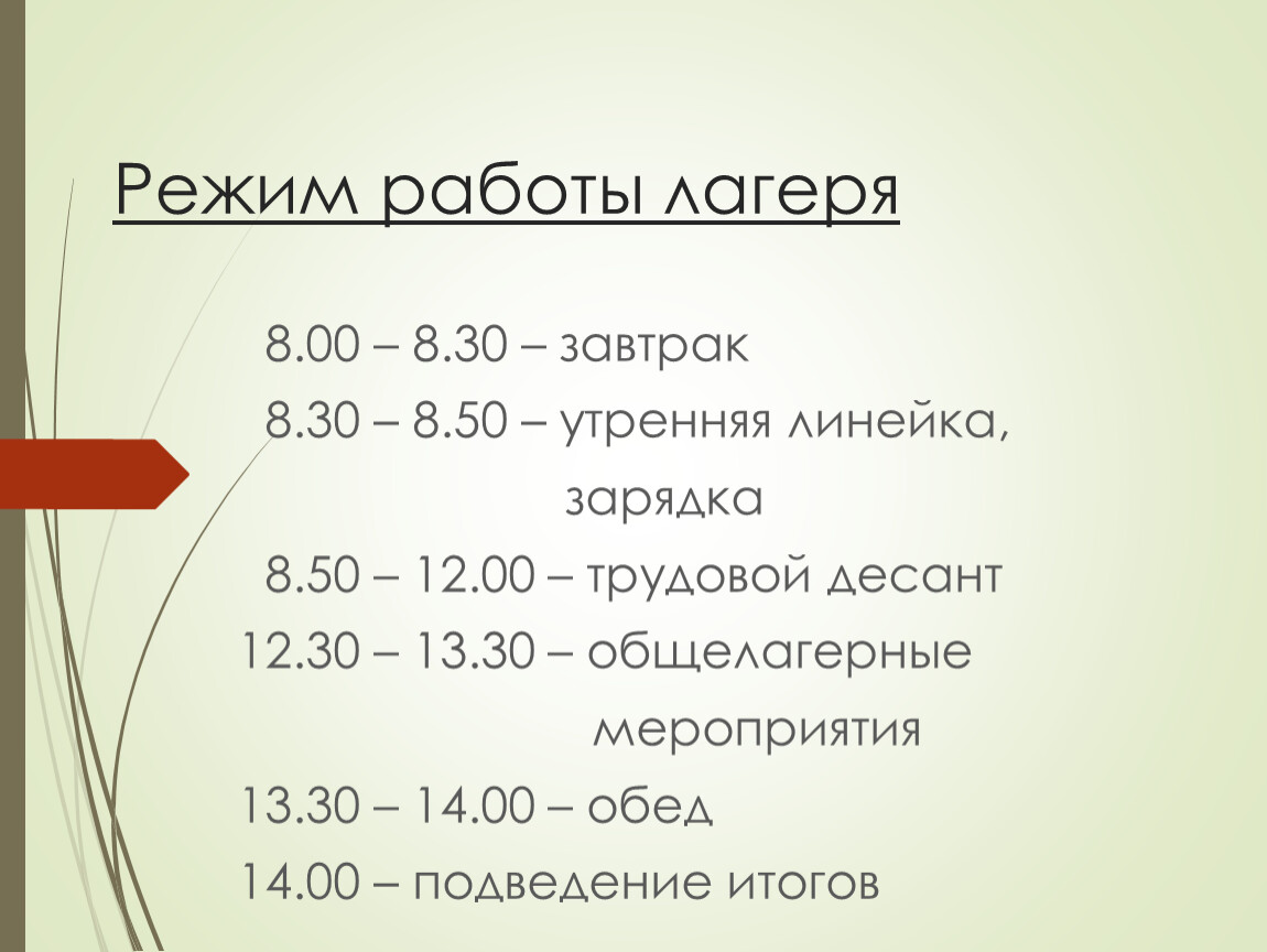 Режим работы лагеря