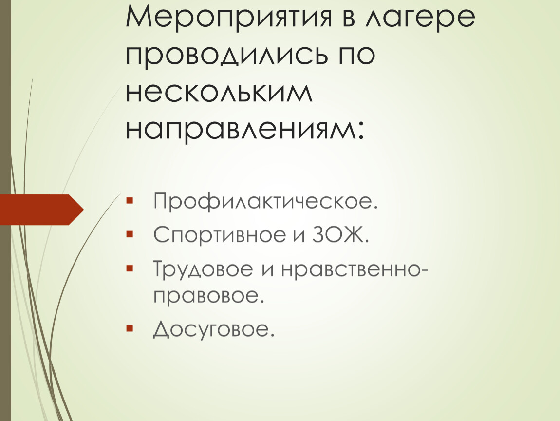 Мероприятия в лагере проводились по нескольким направлениям: