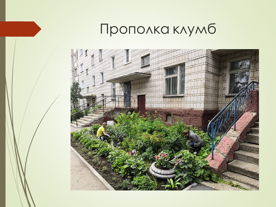 Прополка и полив клумб на территории ЦРТДЮ «Радуга» и д/к «Факел», д/с №224.