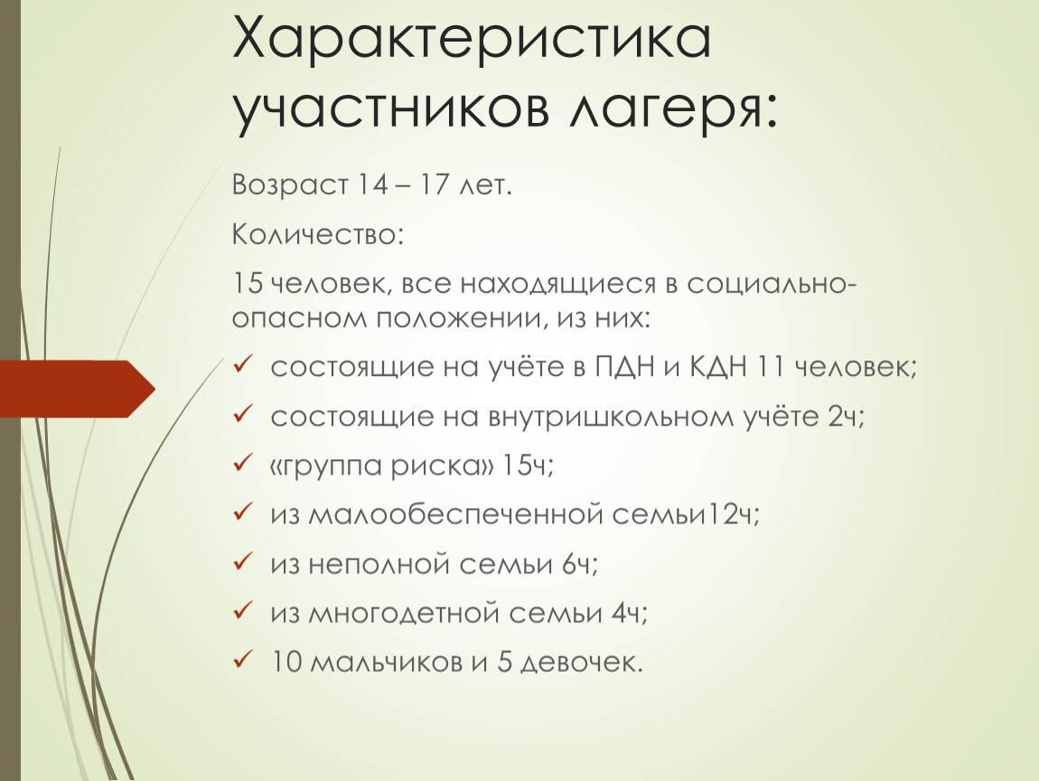 Характеристика участников лагеря: