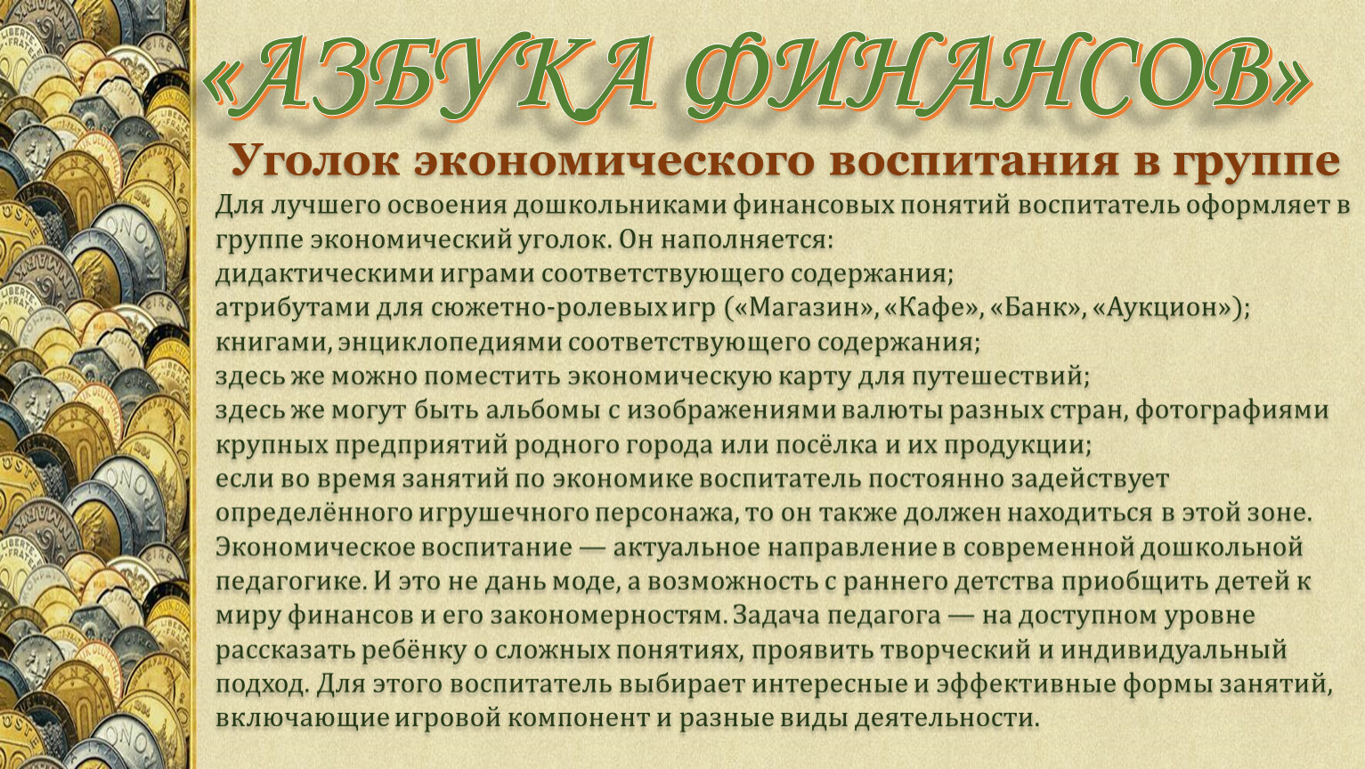 Уголок экономического воспитания в группе