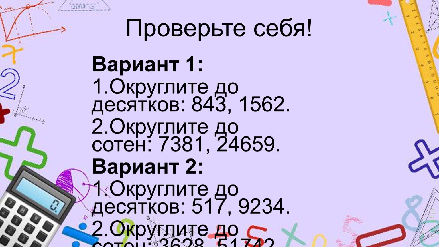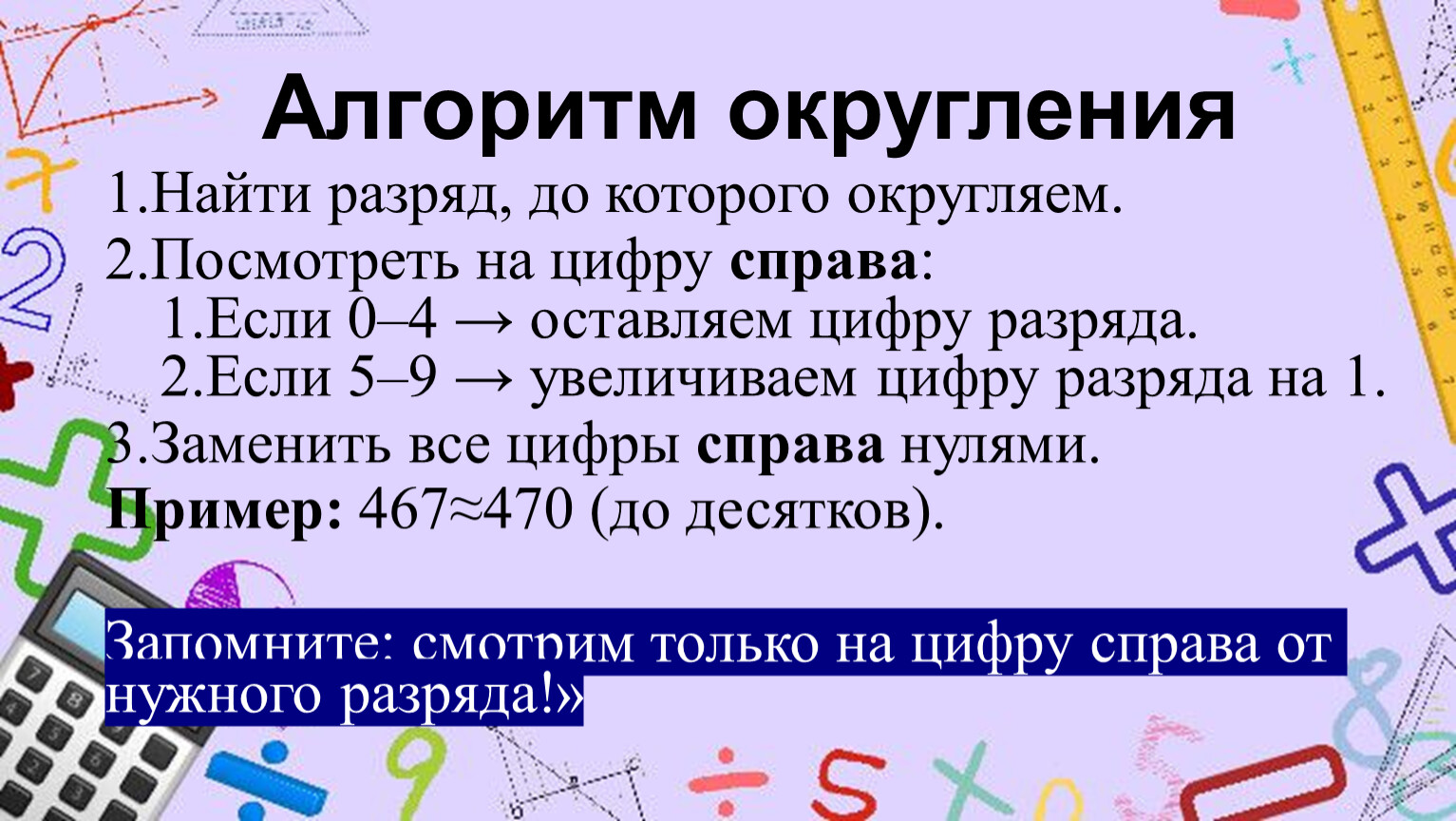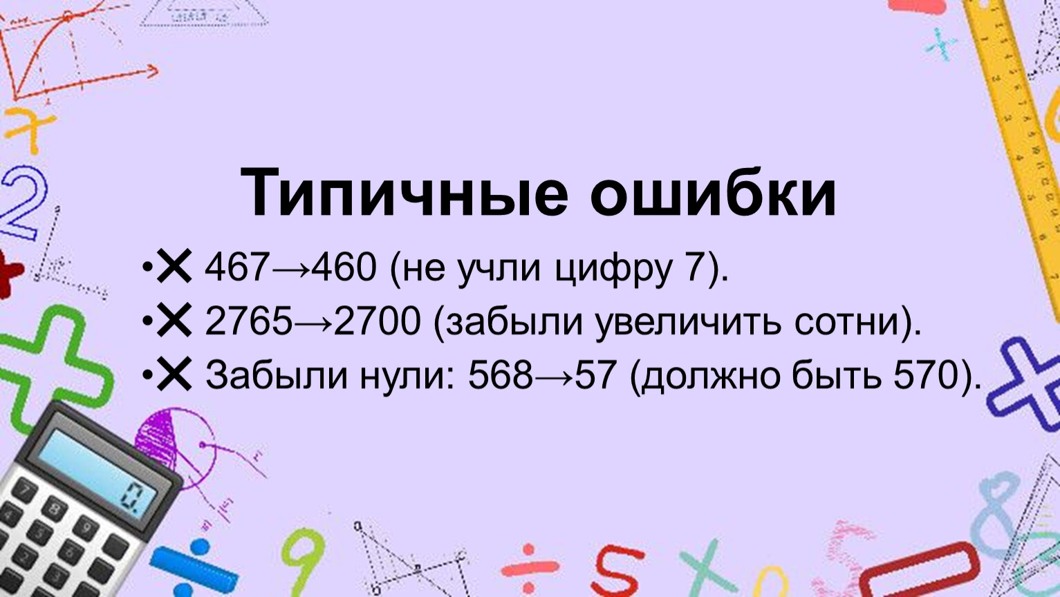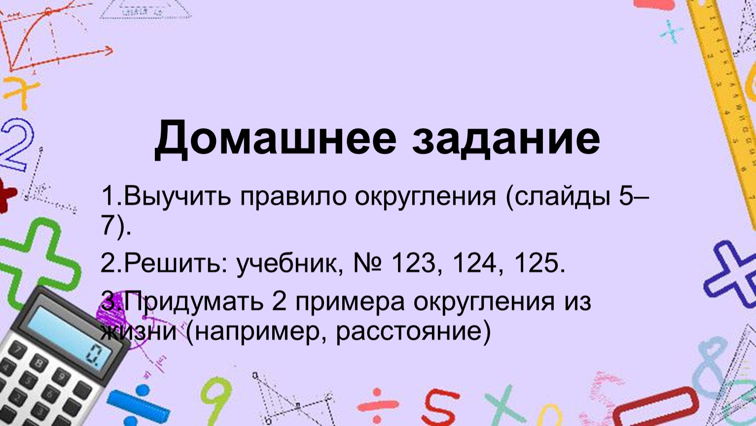 Выучить правило округления (слайды 5–7).