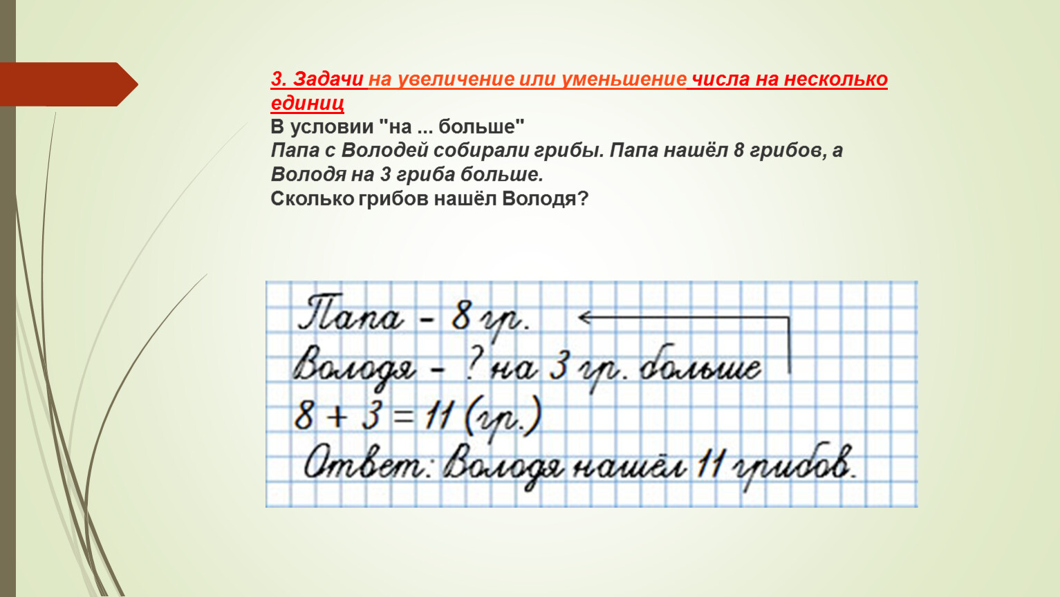 3. Задачи на увеличение или уменьшение числа на несколько единиц