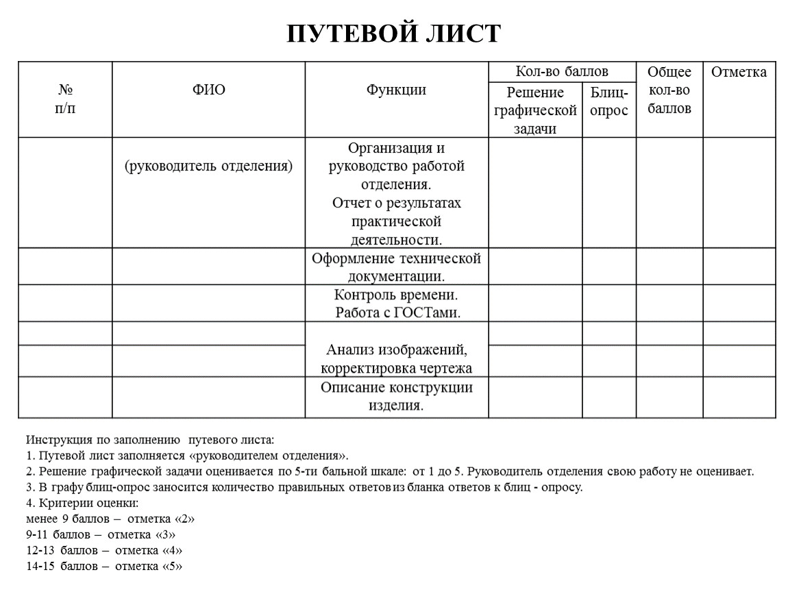 Инструкция по заполнению путевого листа: