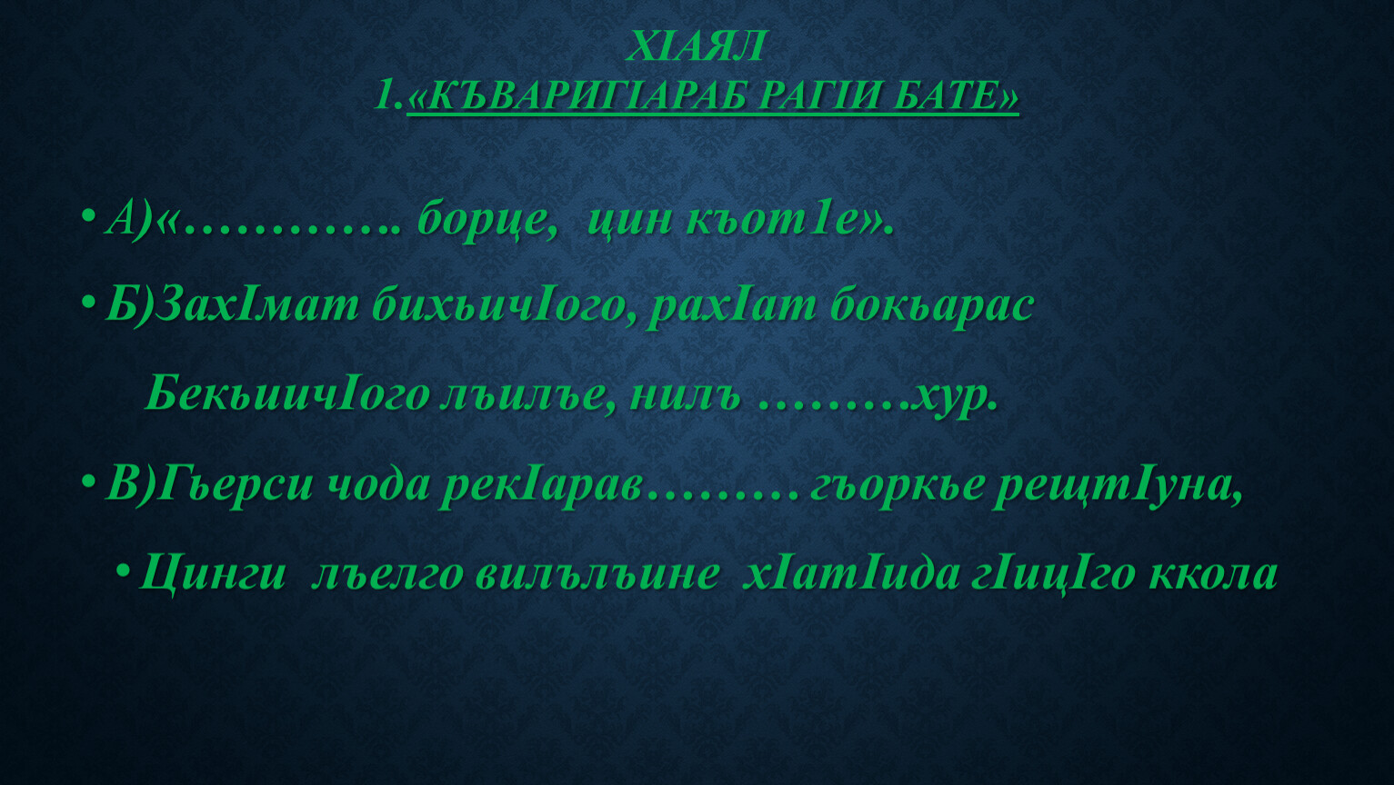 В)Гьерси чода рекIарав……… гъоркье рещтIуна,