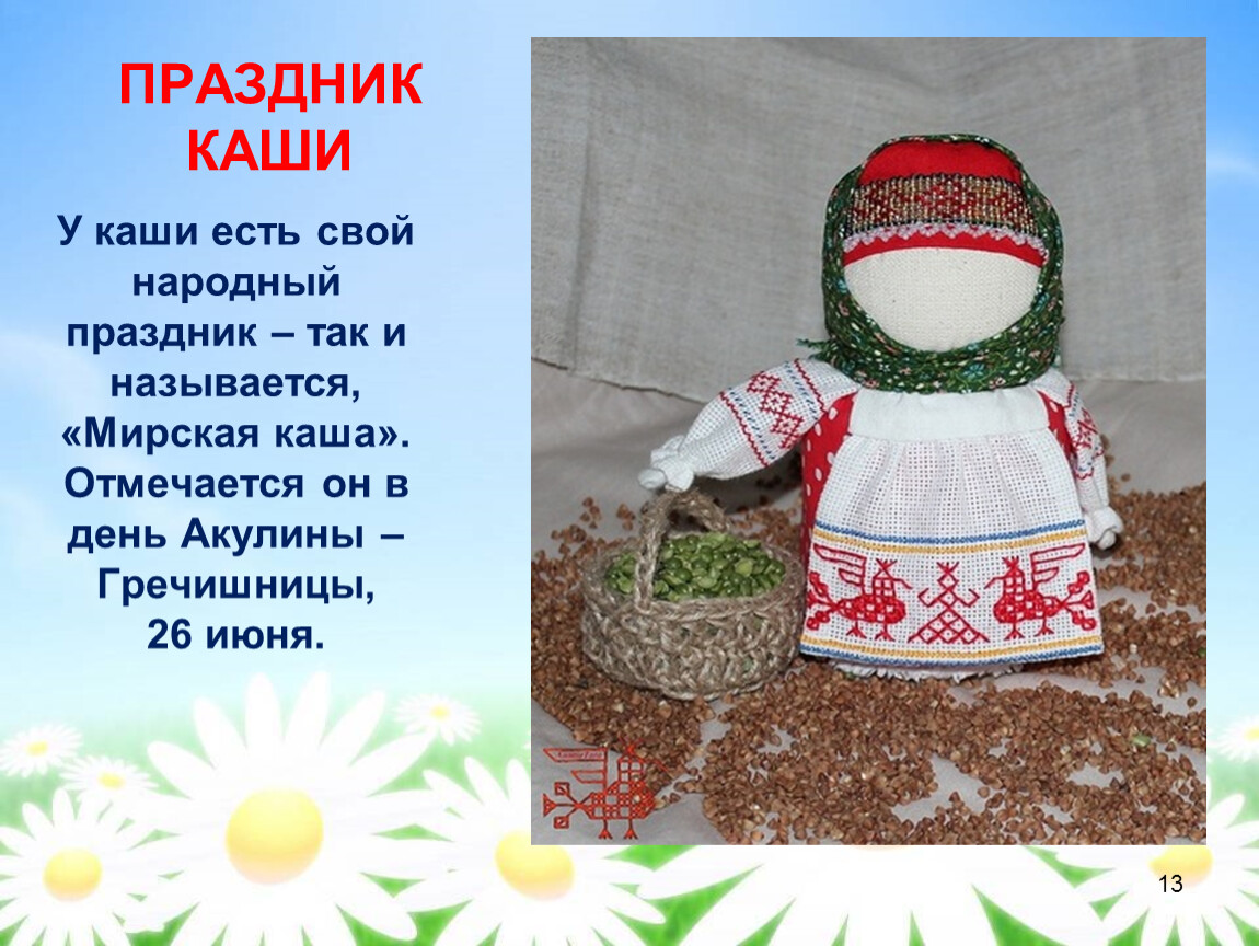 У каши есть свой народный праздник – так и называется, «Мирская каша». Отмечается он в день Акулины – Гречишницы, 26 июня.