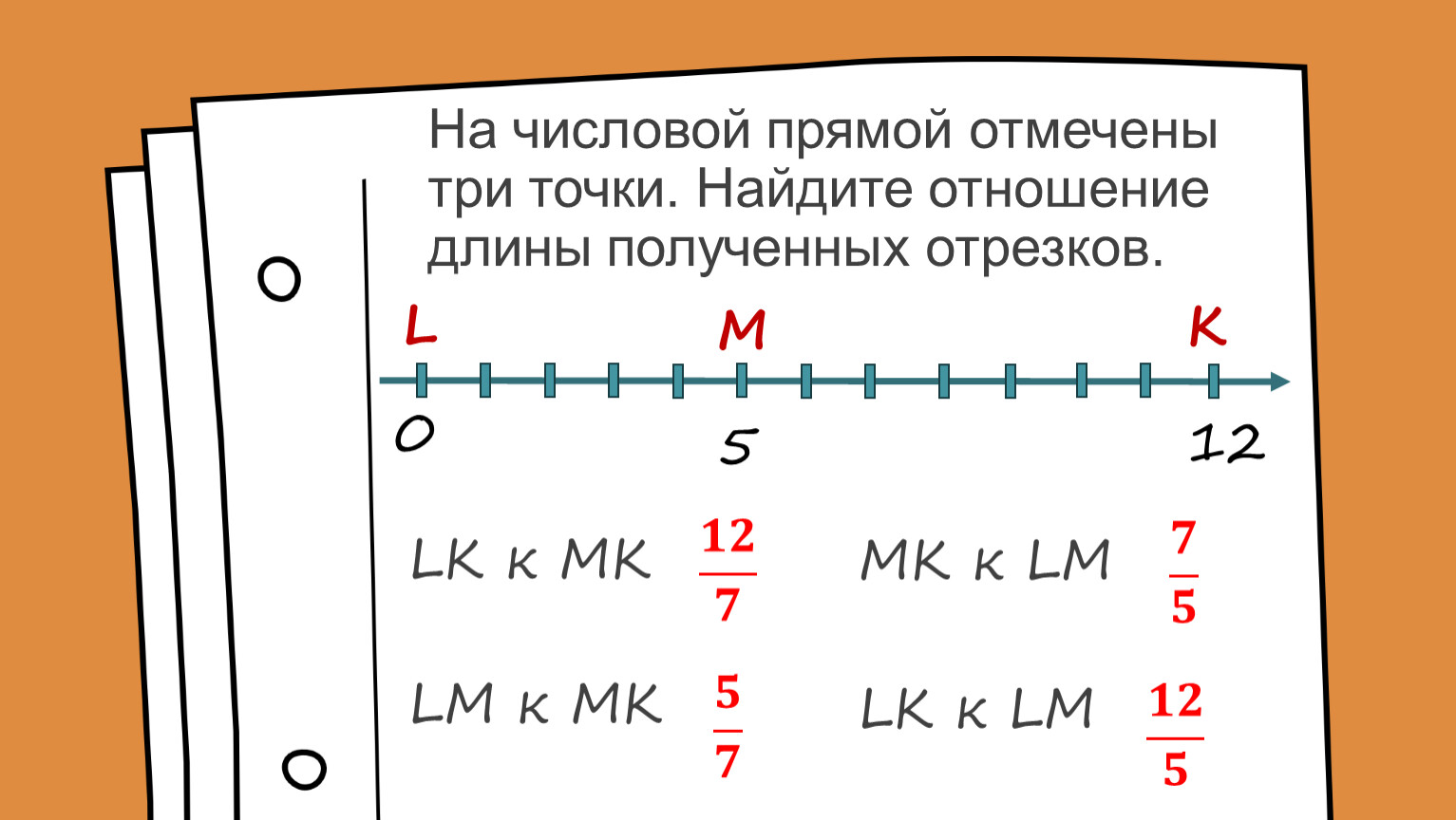 На числовой прямой отмечены три точки. Найдите отношение длины полученных отрезков.