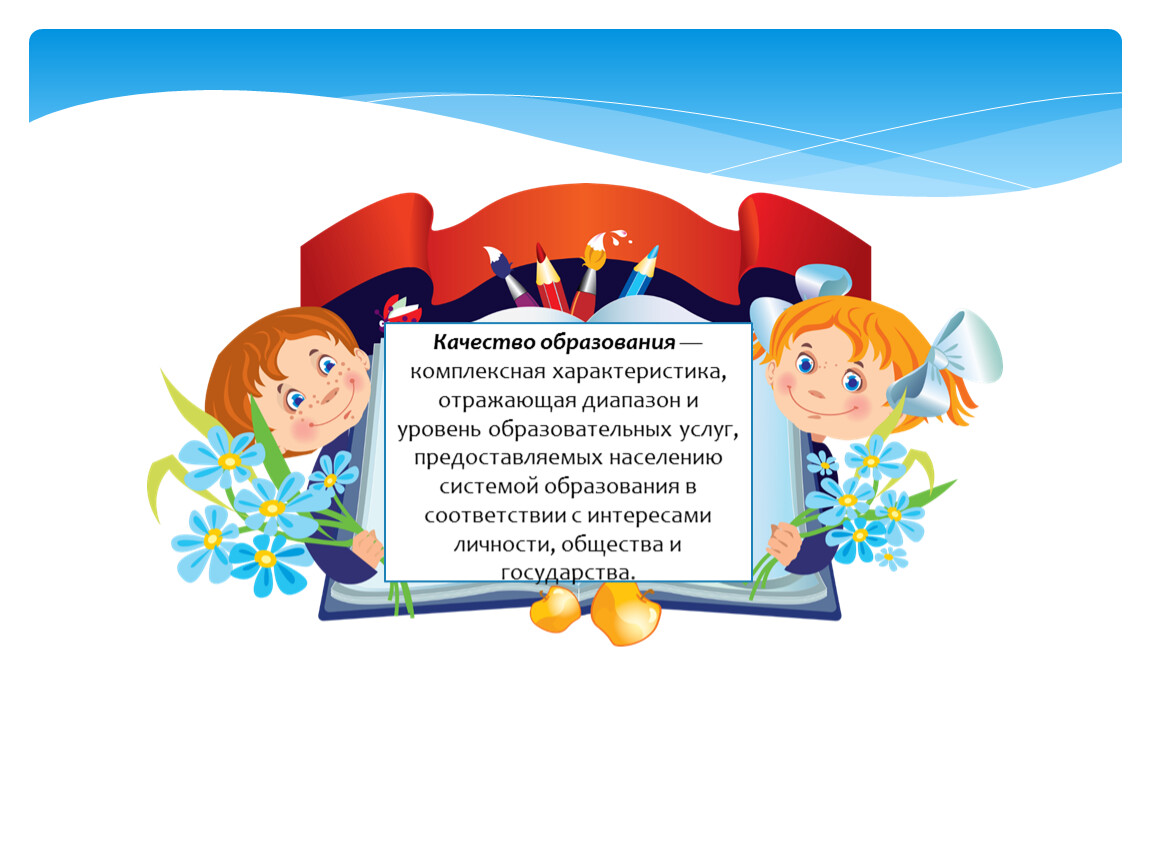 Качество образования ― комплексная характеристика, отражающая диапазон и уровень образовательных услуг, предоставляемых населению системой образования в соответствии с интересами личности, общества и государства.