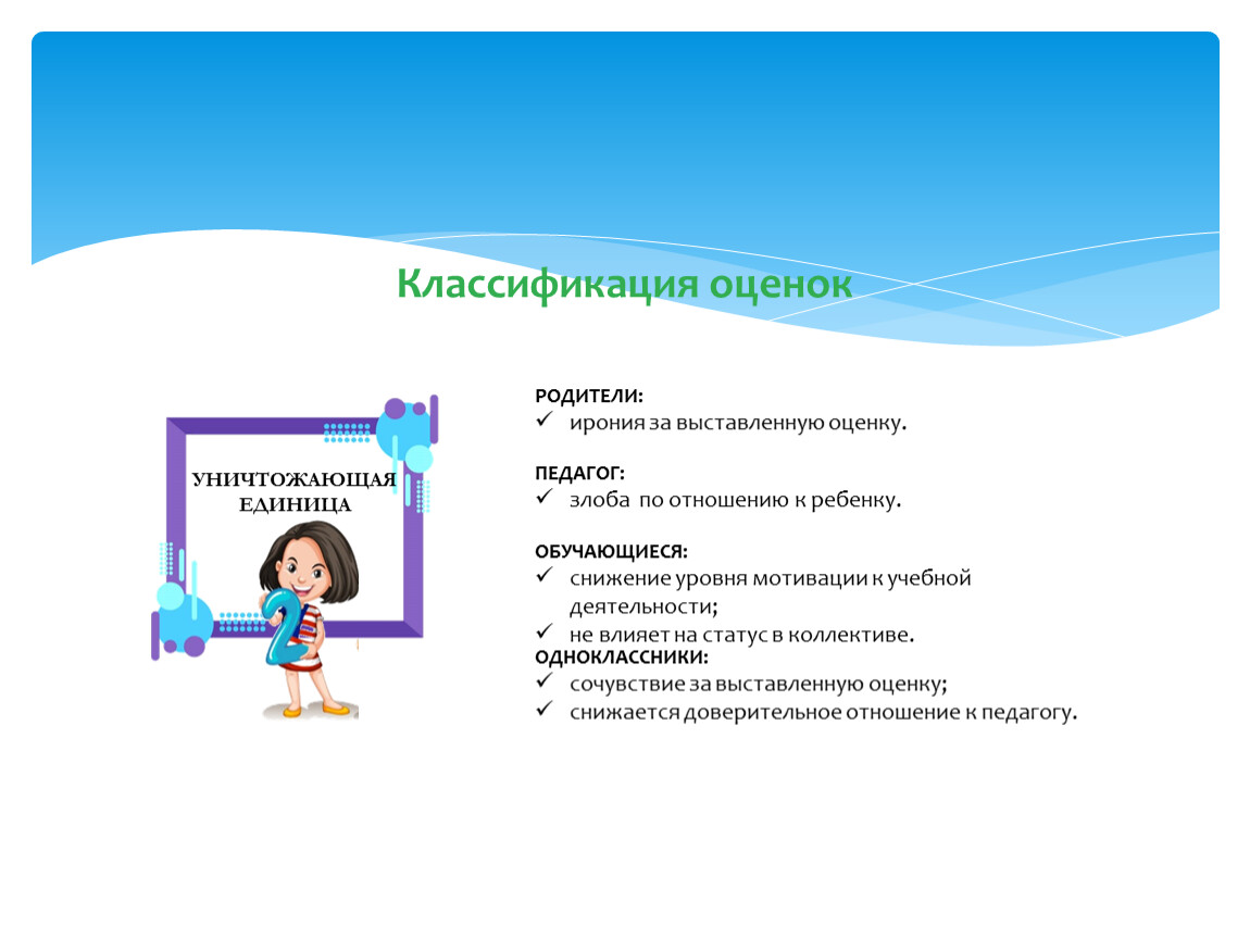 избегание травмирующих ситуаций при выставлении отметок, использование двойки и единицы