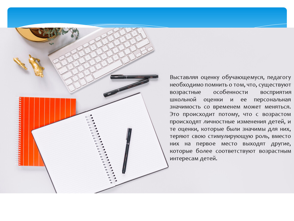 Выставляя оценку обучающемуся, педагогу необходимо помнить о том, что, существуют возрастные особенности восприятия школьной оценки и ее персональная значимость со временем может меняться. Это происходит потому, что с возрастом происходят личностные изменения детей, и те оценки, которые были значимы для них, теряют свою стимулирующую роль, вместо них на первое место выходят другие, которые более соответствуют возрастным интересам детей.