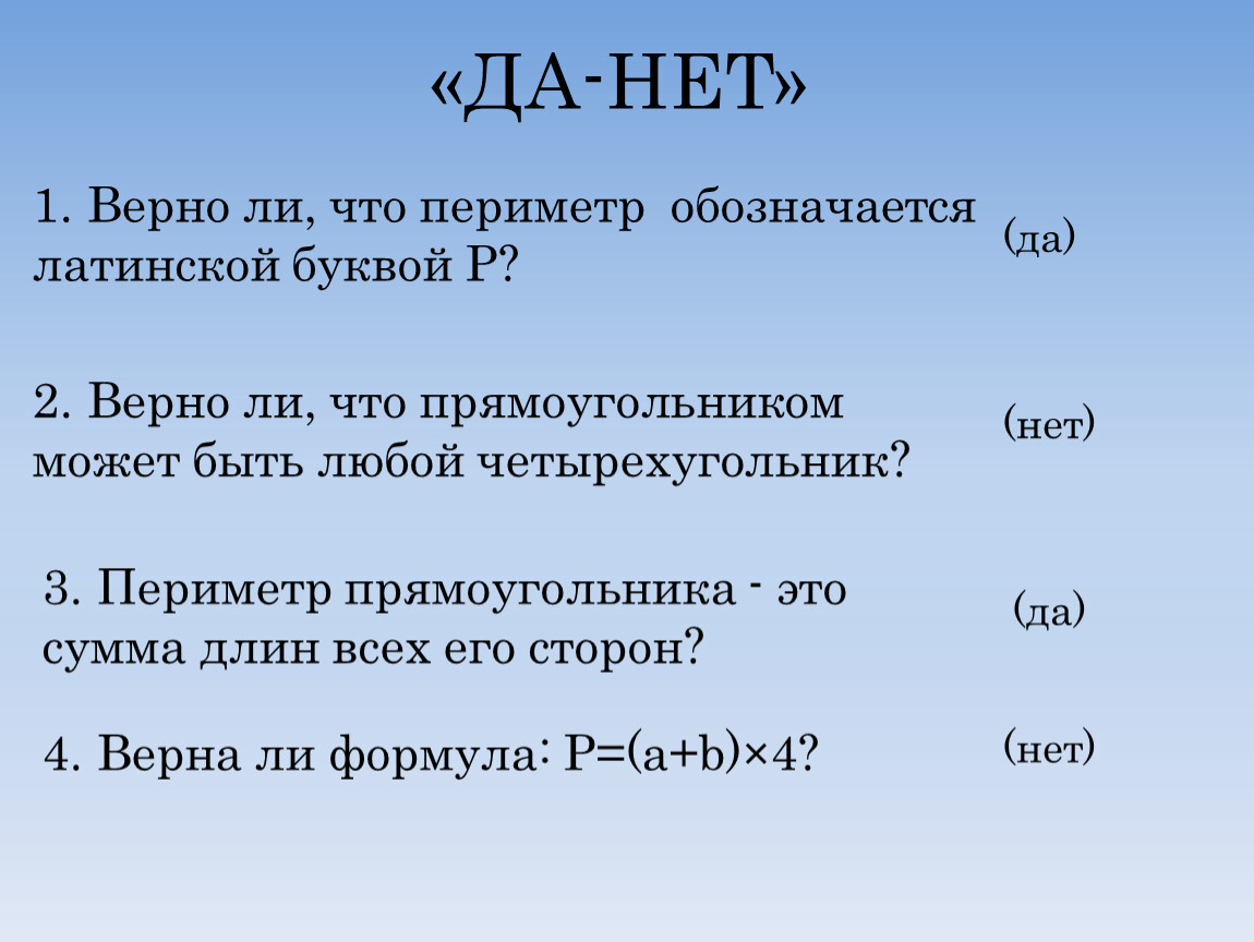 1. Верно ли, что периметр обозначается латинской буквой Р?