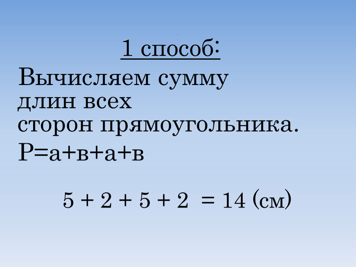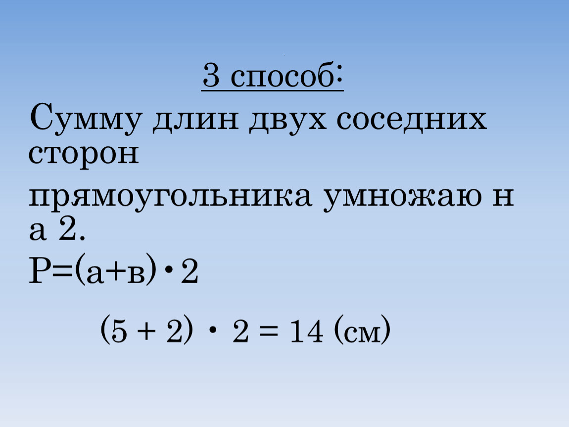 (5 + 2) • 2 = 14 (см)
