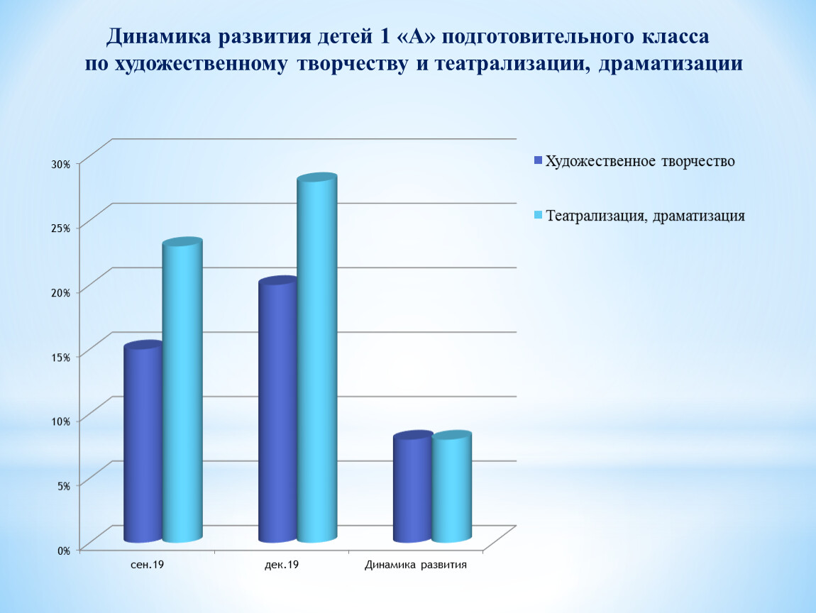 Динамика развития детей 1 «А» подготовительного класса по художественному творчеству и театрализации, драматизации