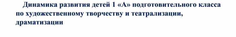 Динамика развития детей 1 «А» подготовительного класса по художественному творчеству и театрализации, драматизации
