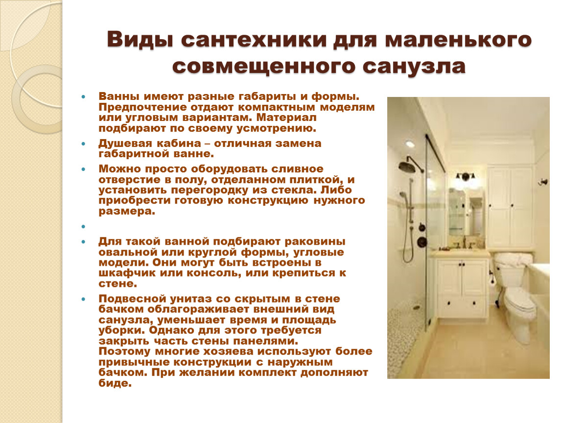 Виды сантехники для маленького совмещенного санузла