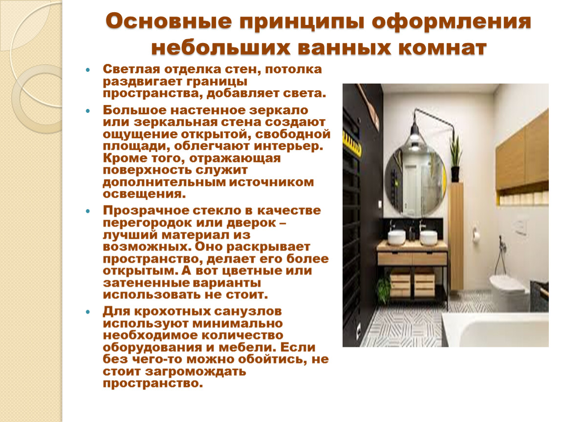 Основные принципы оформления небольших ванных комнат