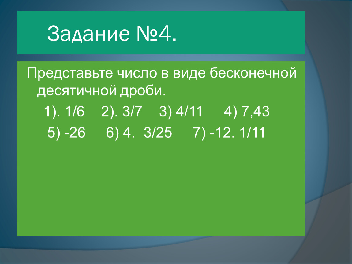 1). 1/6 2). 3/7 3) 4/11 4) 7,43