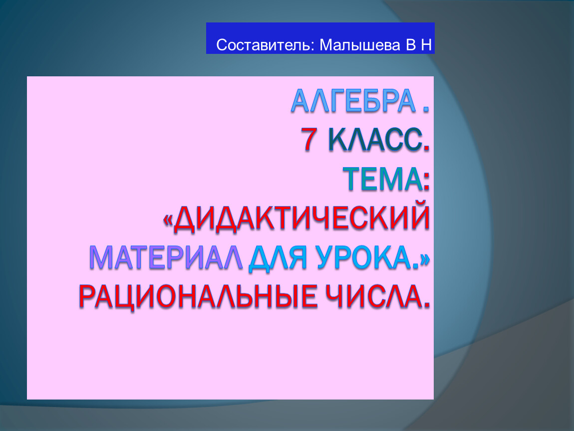 Алгебра . 7 класс.Тема:«ДидактическийМатериал для урока.»Рациональные числа.