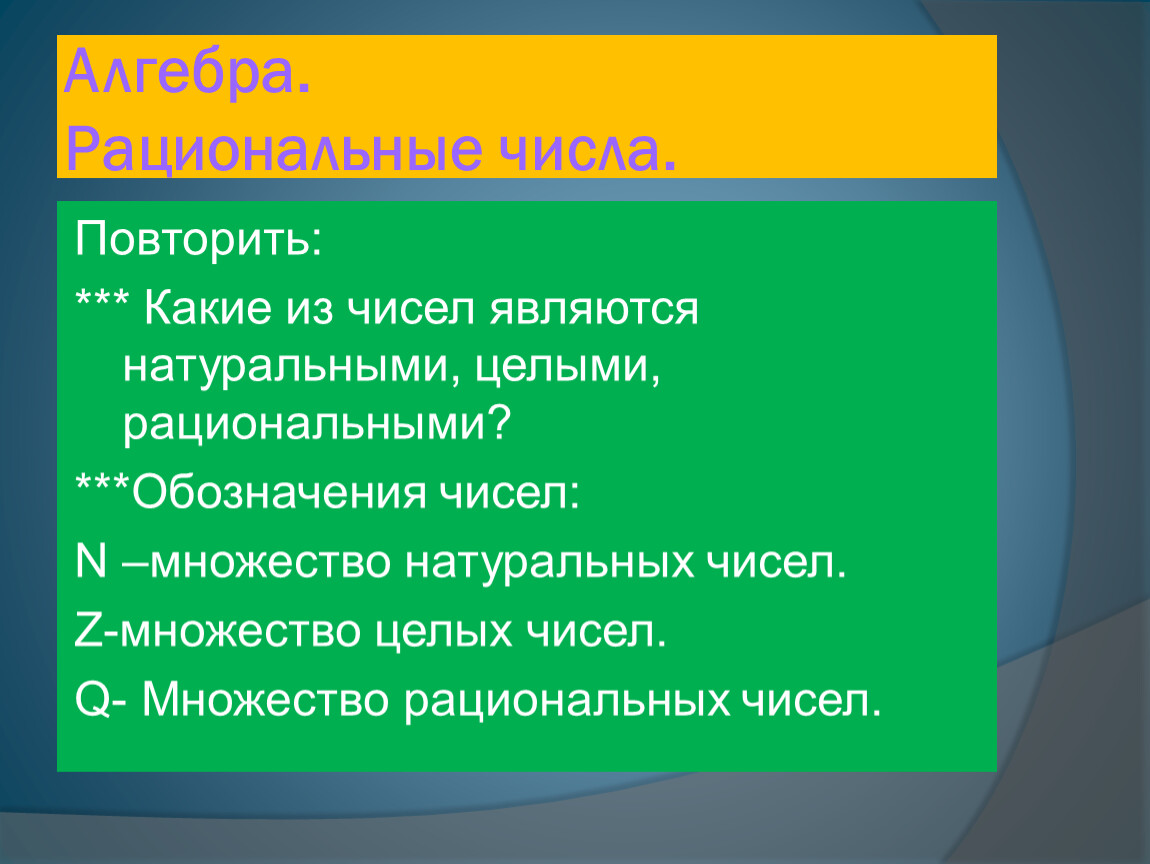 *** Целые числа –натуральные + отрицательные + 0. (1,2,3, …, -1,-2,-3,…, 0).