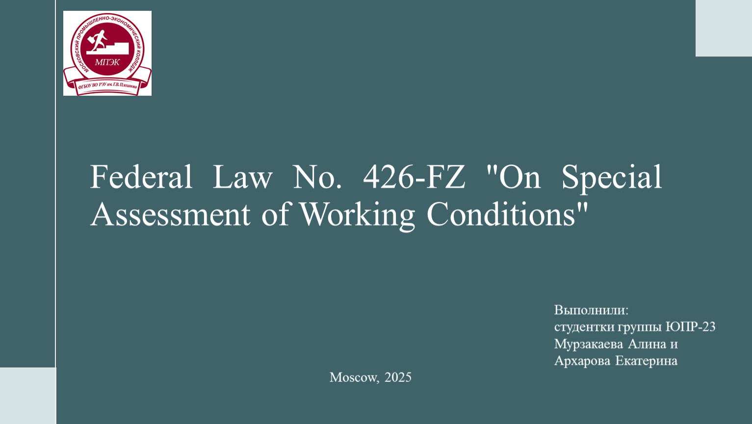 Federal Law No. 426-FZ "On Special Assessment of Working Conditions"