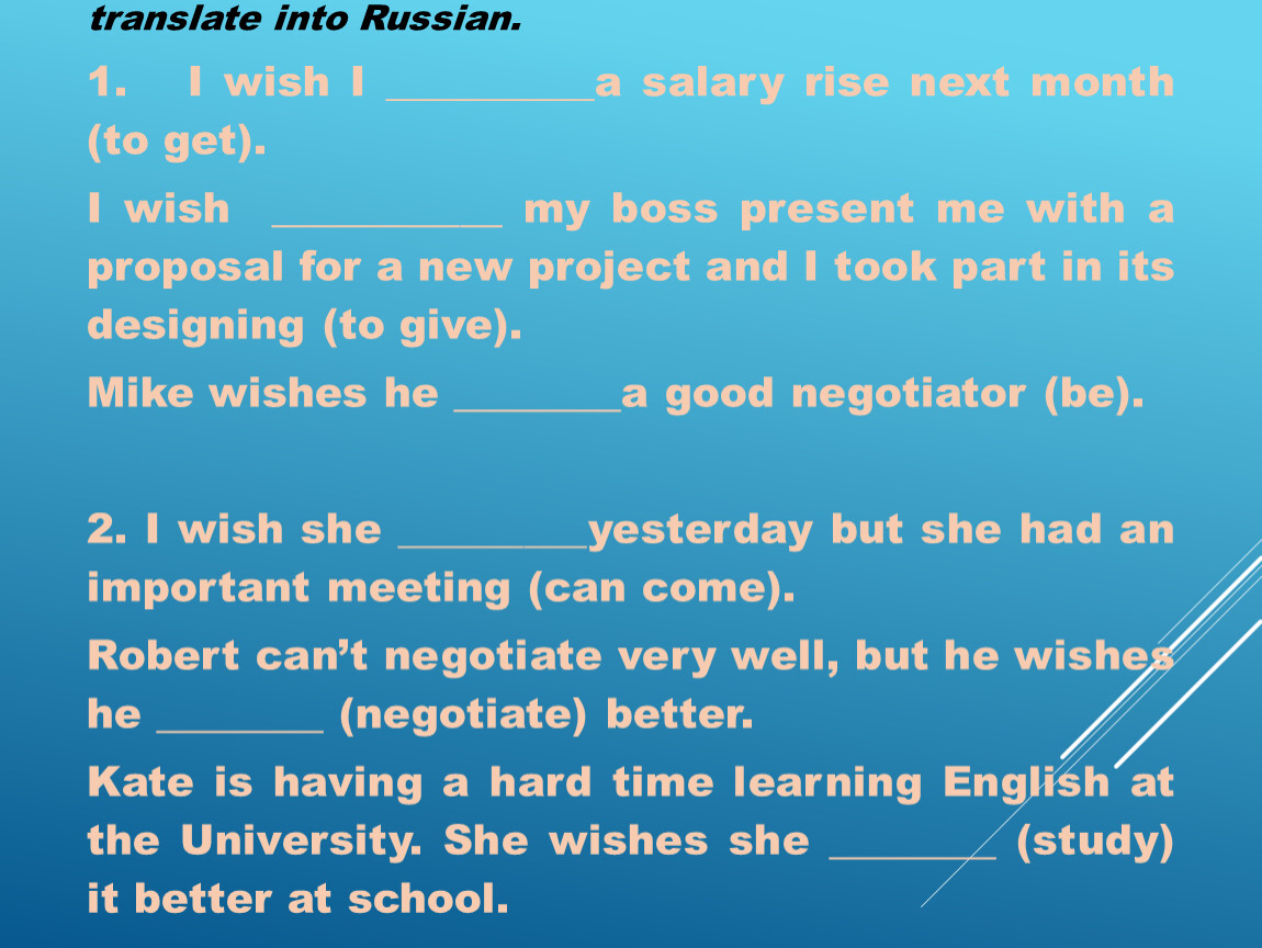 2. I wish she _________yesterday but she had an important meeting (can come).