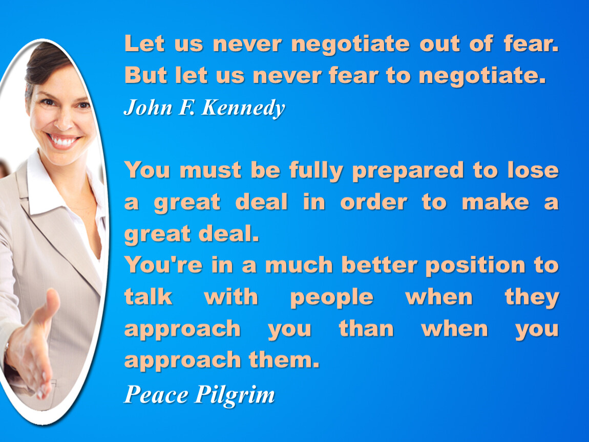 Let us never negotiate out of fear. But let us never fear to negotiate.
