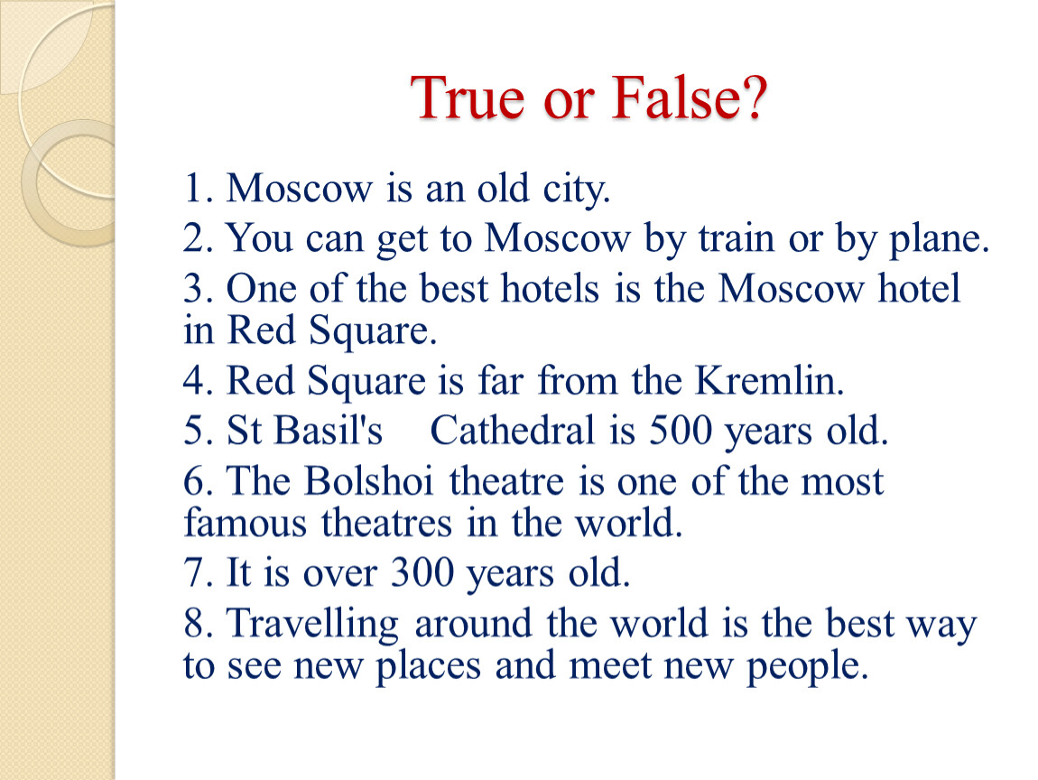 1. Moscow is an old city.