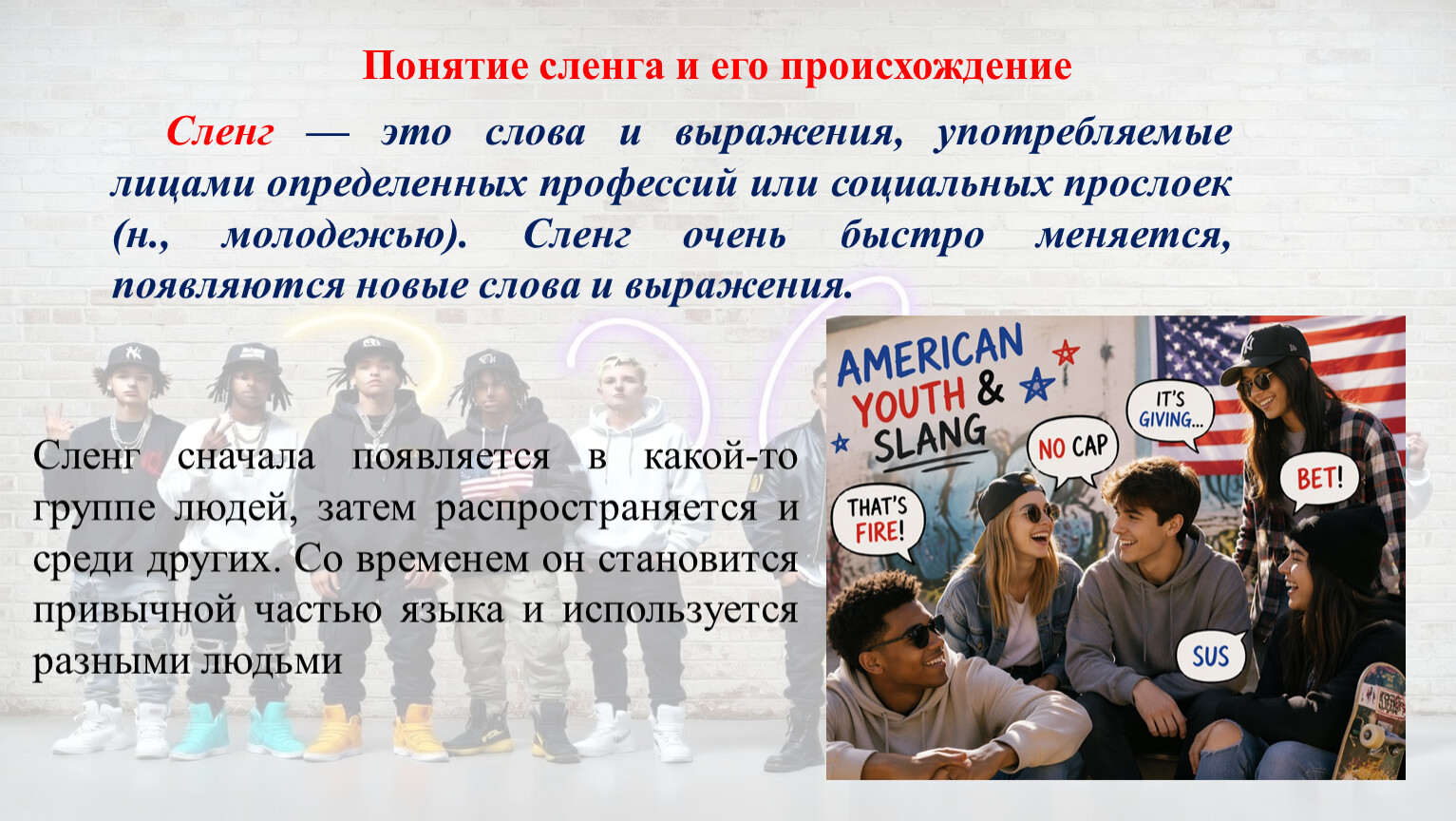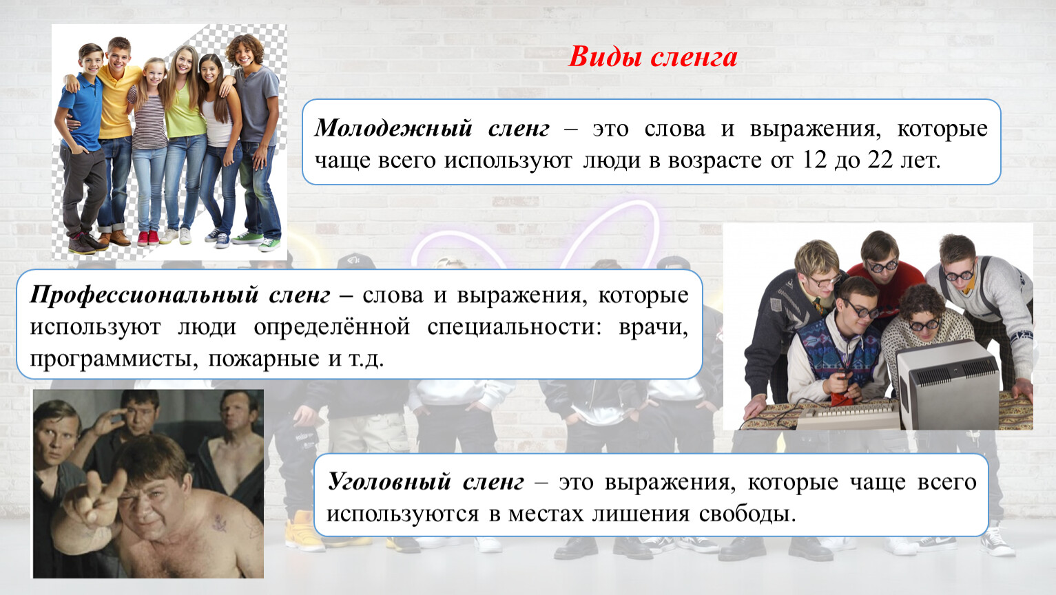 Молодежный сленг – это слова и выражения, которые чаще всего используют люди в возрасте от 12 до 22 лет.
