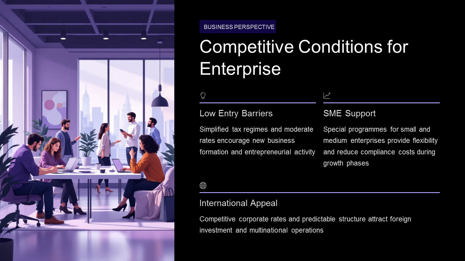 Simplified tax regimes and moderate rates encourage new business formation and entrepreneurial activity
