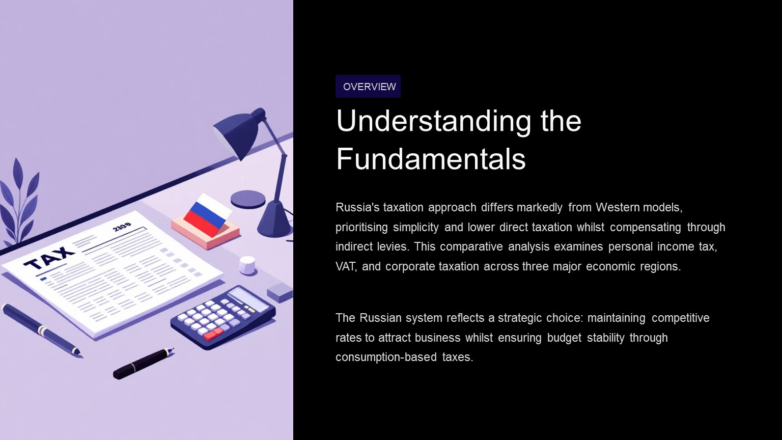 Russia's taxation approach differs markedly from Western models, prioritising simplicity and lower direct taxation whilst compensating through indirect levies. This comparative analysis examines personal income tax, VAT, and corporate taxation across three major economic regions.