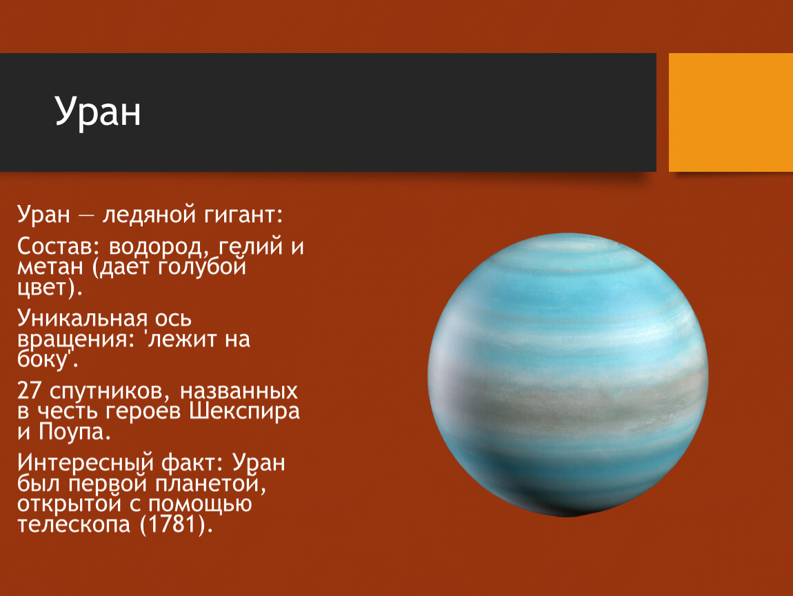 Интересный факт: Уран был первой планетой, открытой с помощью телескопа (1781).
