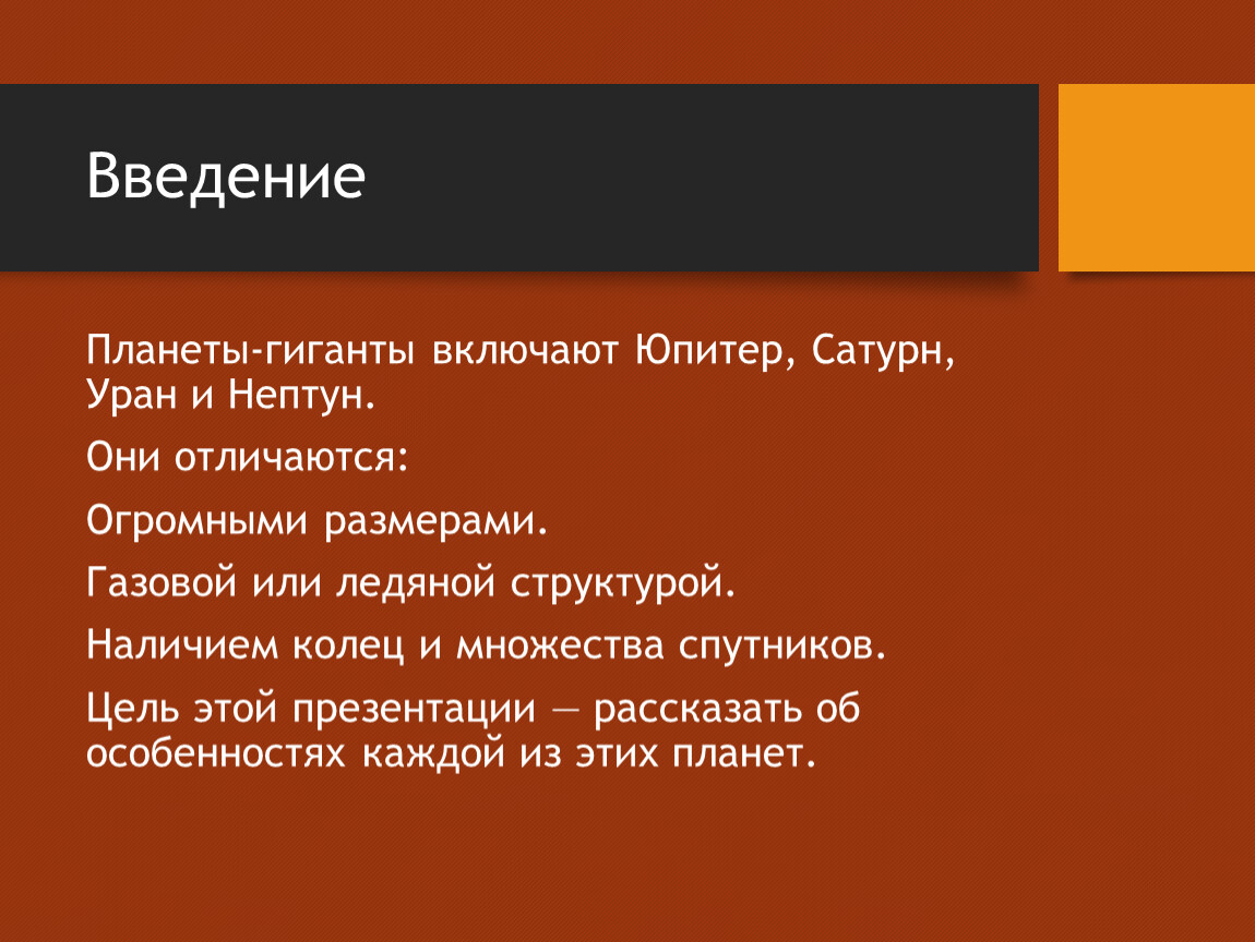 Цель этой презентации — рассказать об особенностях каждой из этих планет.