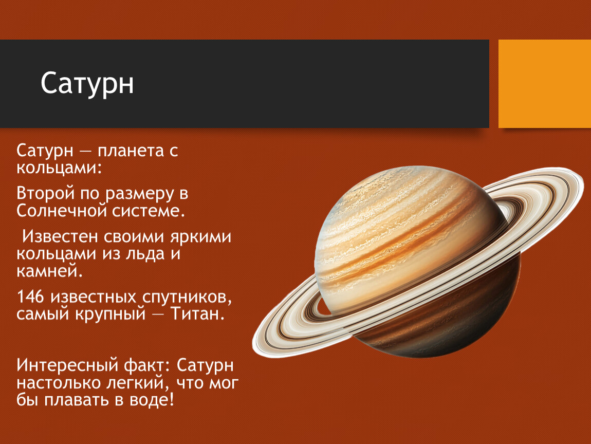 Интересный факт: Сатурн настолько легкий, что мог бы плавать в воде!