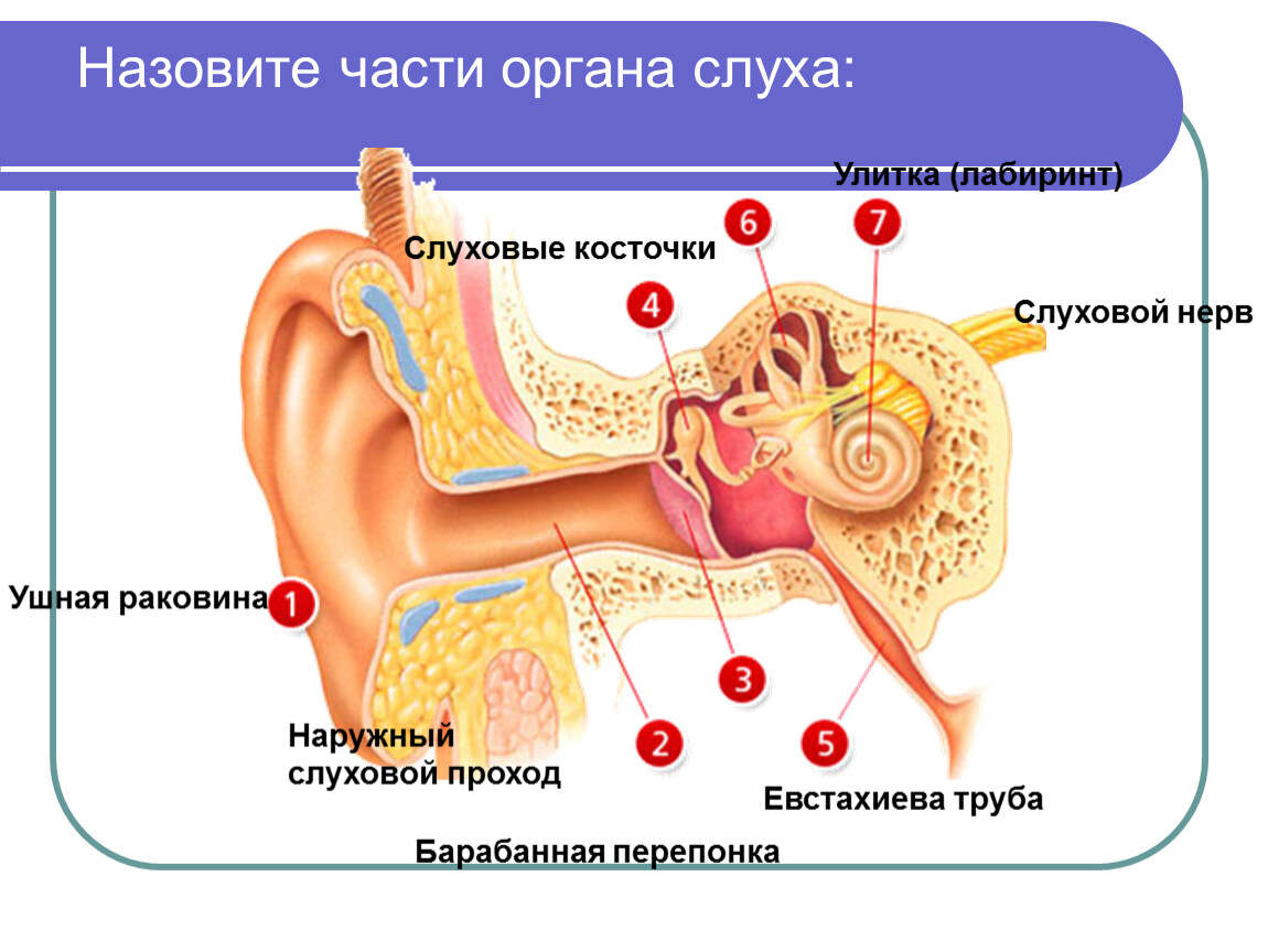 Внутреннее ухо: | Слуховые рецепторы улитки | Преобразуют звуковые |
