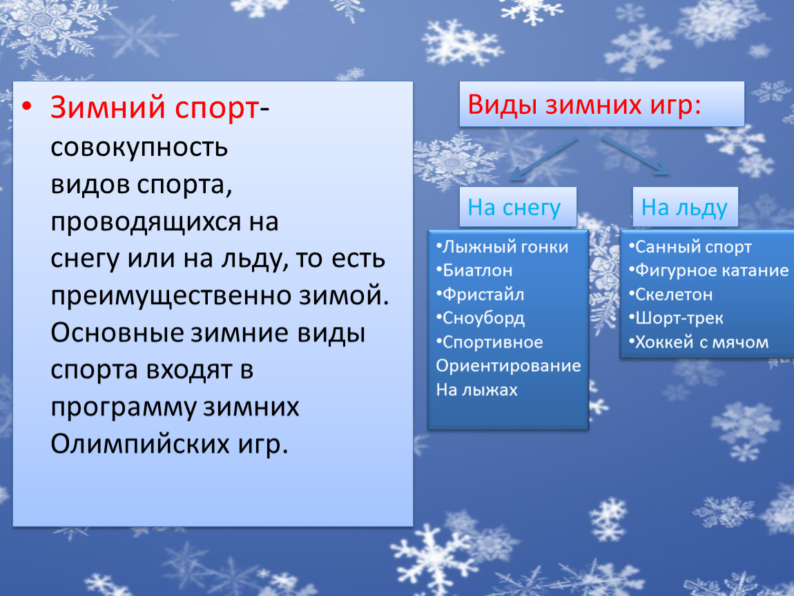Виды зимних игр: