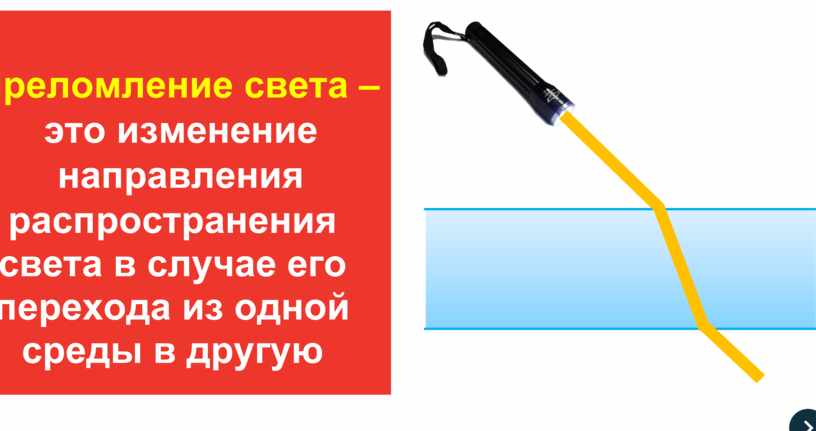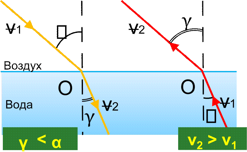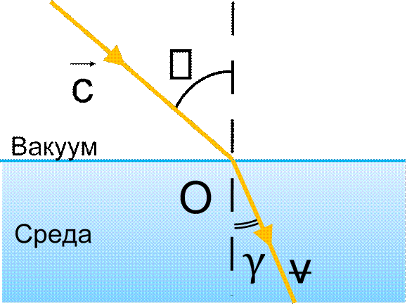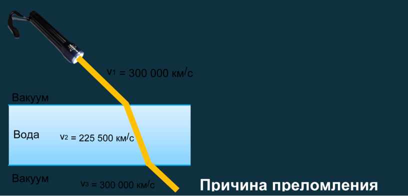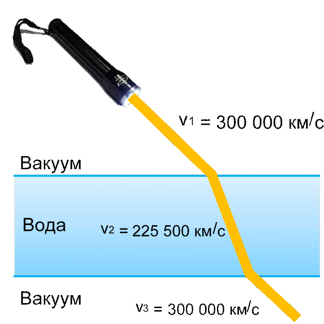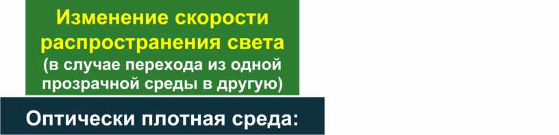 Изменение скорости распространения света (в случае перехода из одной прозрачной среды в другую) |