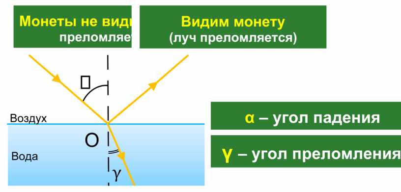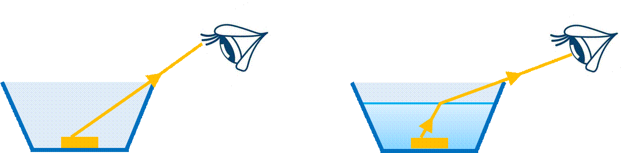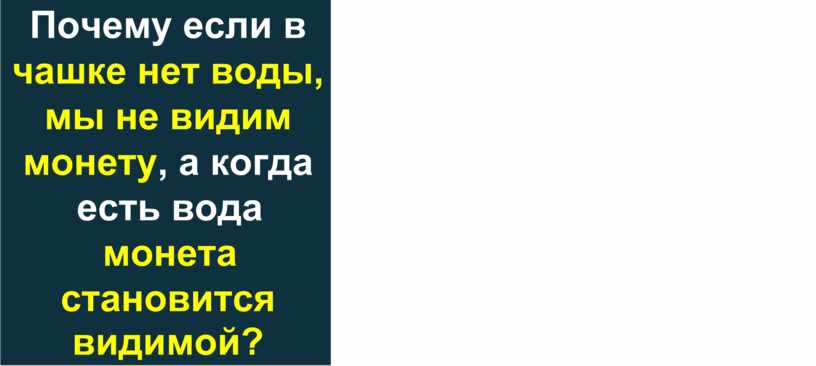 Почему если в чашке нет воды, мы не видим монету, а когда есть вода монета становится видимой? |