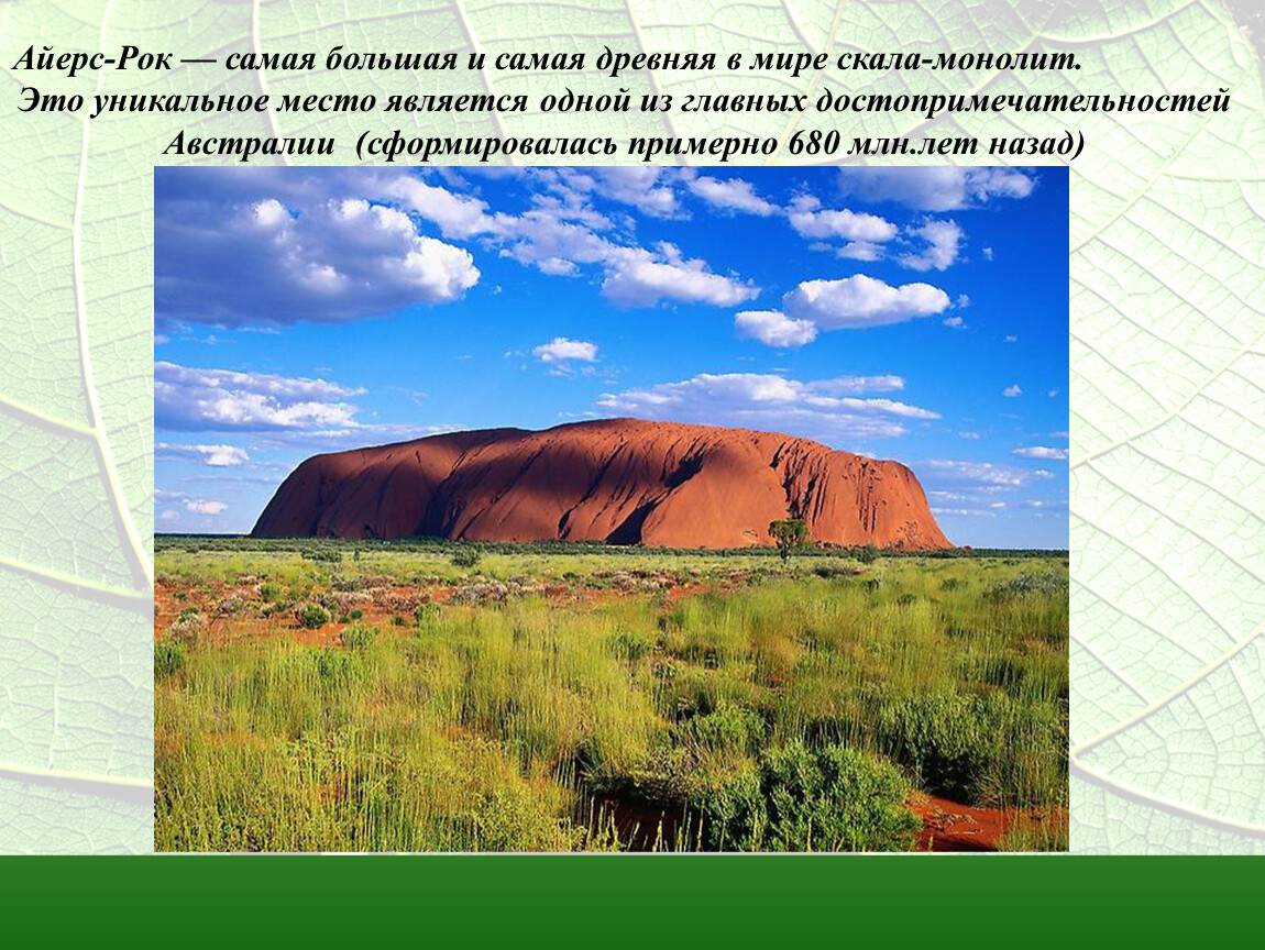Айерс-Рок — самая большая и самая древняя в мире скала-монолит.