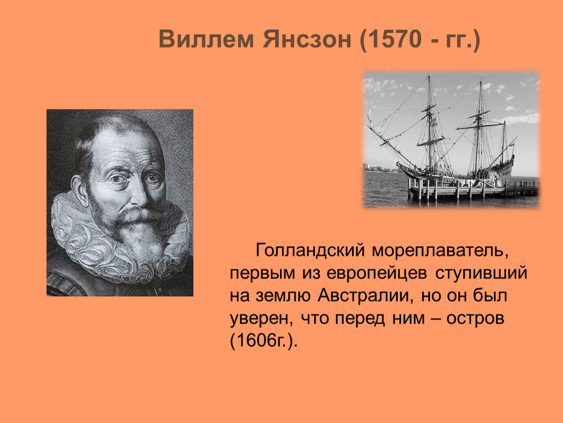 Голландский мореплаватель, первым из европейцев ступивший на землю Австралии, но он был уверен, что перед ним – остров (1606г.).