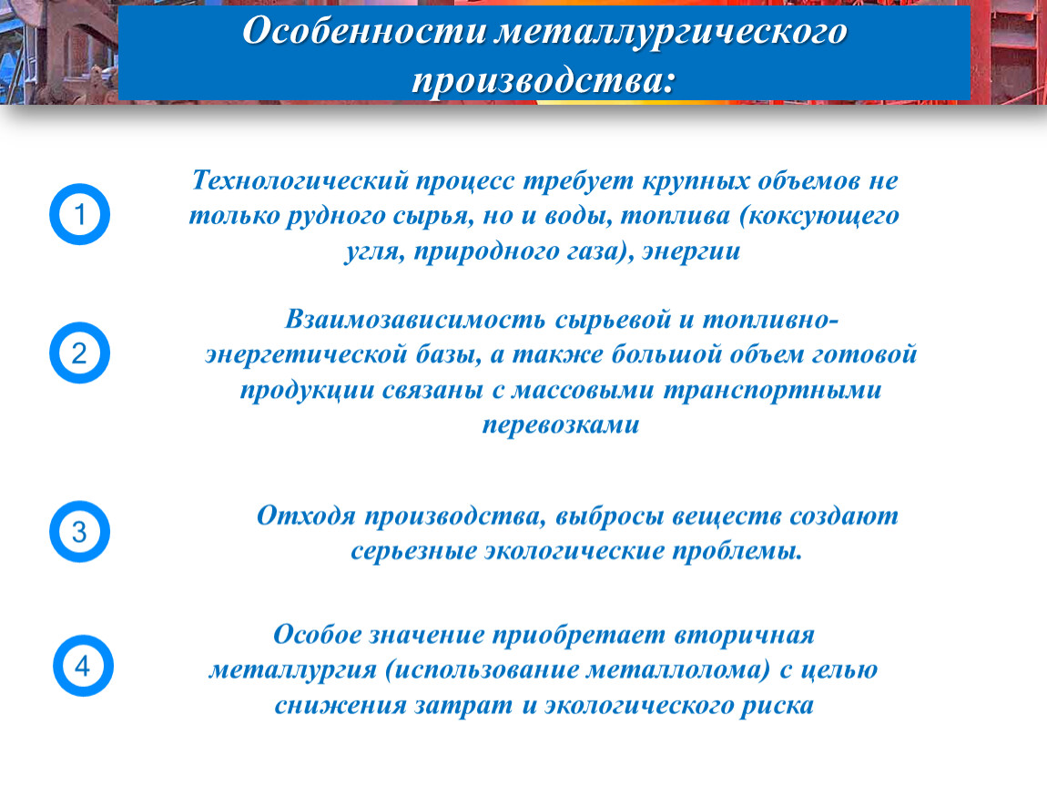 Особенности металлургического производства: