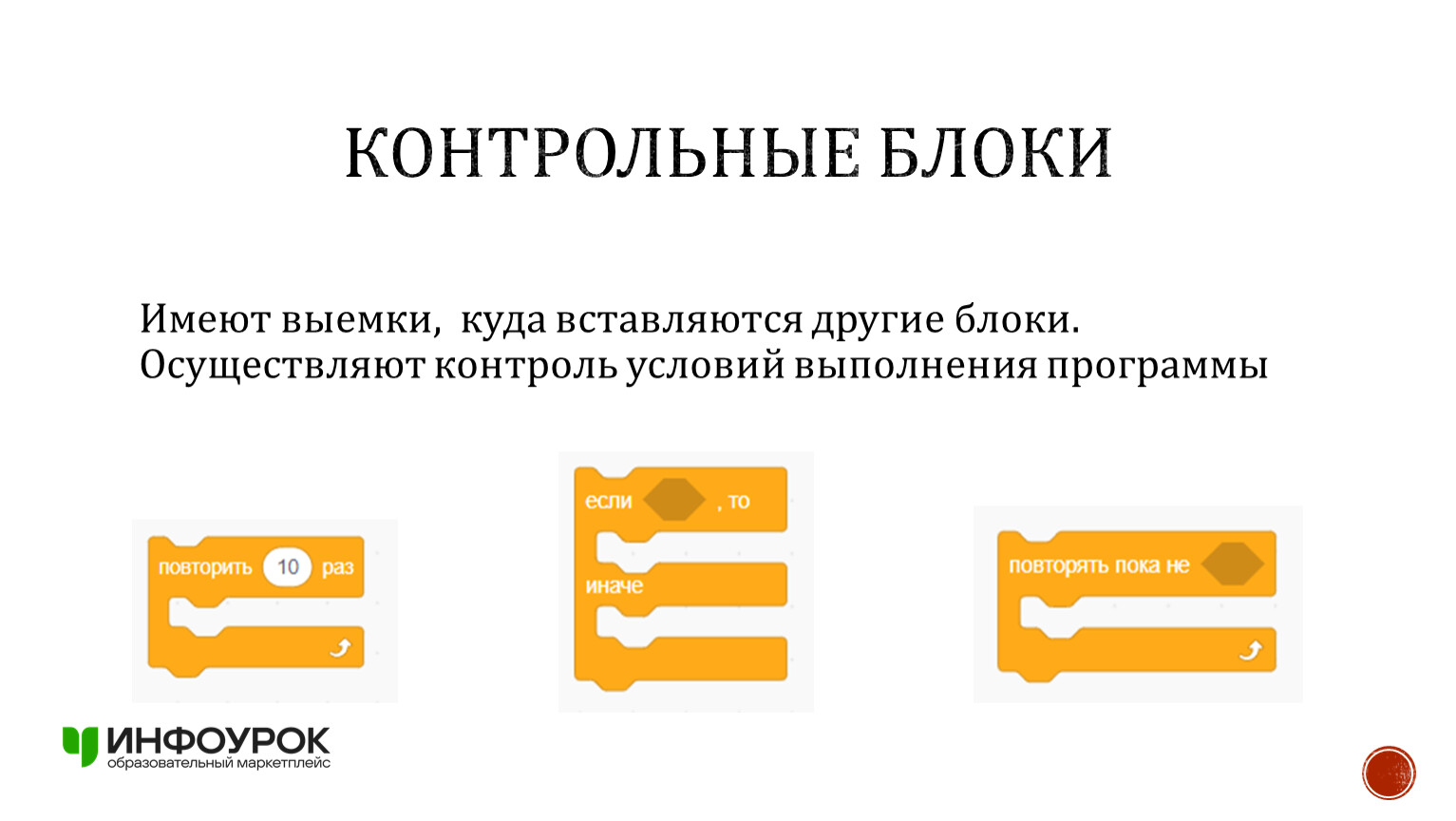Имеют выемки, куда вставляются другие блоки. Осуществляют контроль условий выполнения программы