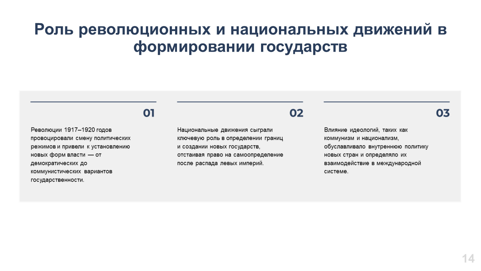 Национальные движения сыграли ключевую роль в определении границ и создании новых государств, отстаивая право на самоопределение после распада левых империй.