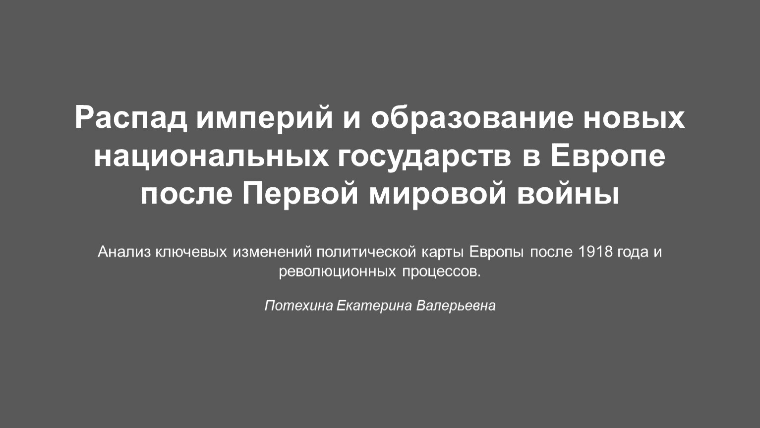 Распад империй и образование новых национальных государств в Европе после Первой мировой войны Анализ ключевых изменений политической карты Европы после 1918 года и революционных процессов. Потехина Екатерина Валерьевна